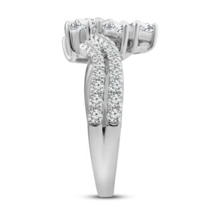 This enchanting diamond ring collection features five distinctively-shaped diamonds, symbolic of everything she means to you. Each diamond shape has a different meaning, from integrity and wisdom, to confidence, totality, and elegance. The beautiful 10K white gold ring features an oval-cut, emerald-cut, pear-shaped, round-cut, and princess-cut diamond at the center, while ribbons of brilliant round-cut diamonds flow outward. The gorgeous ring has a total diamond weight of 1 1/2 carats.